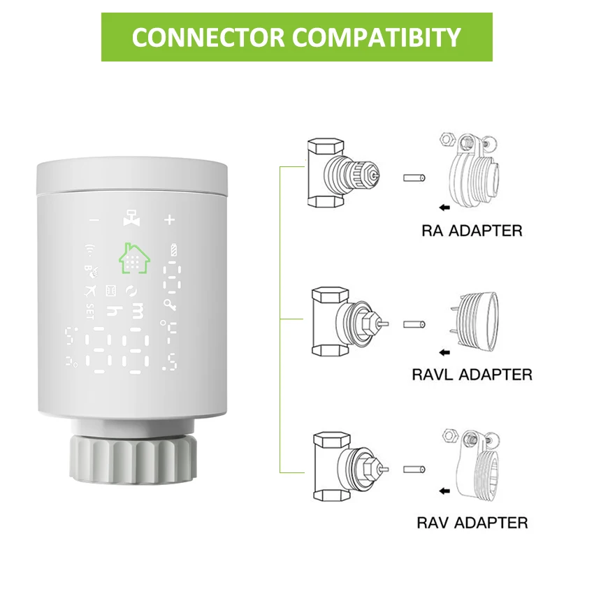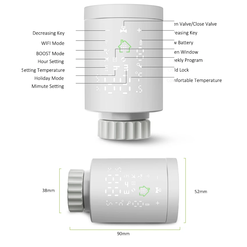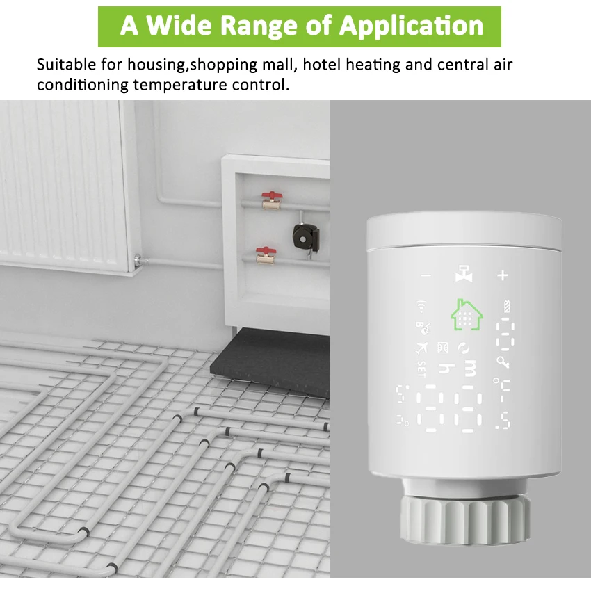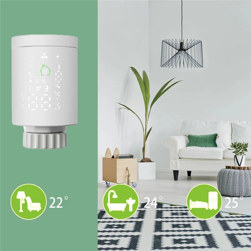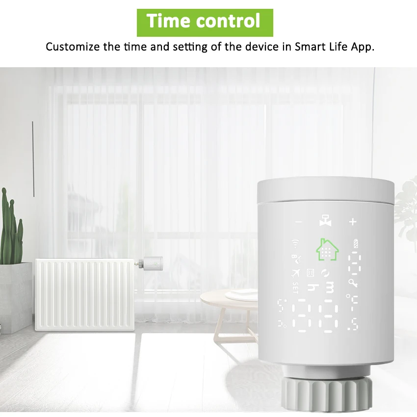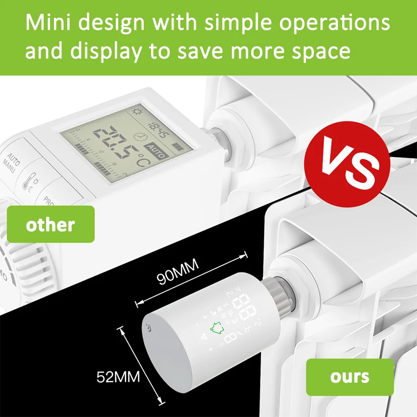 1.Smart Tuya ZigBee Radiator Actuator Thermostat:New mini design with simple and clear LCD display screen on the body,the radiator