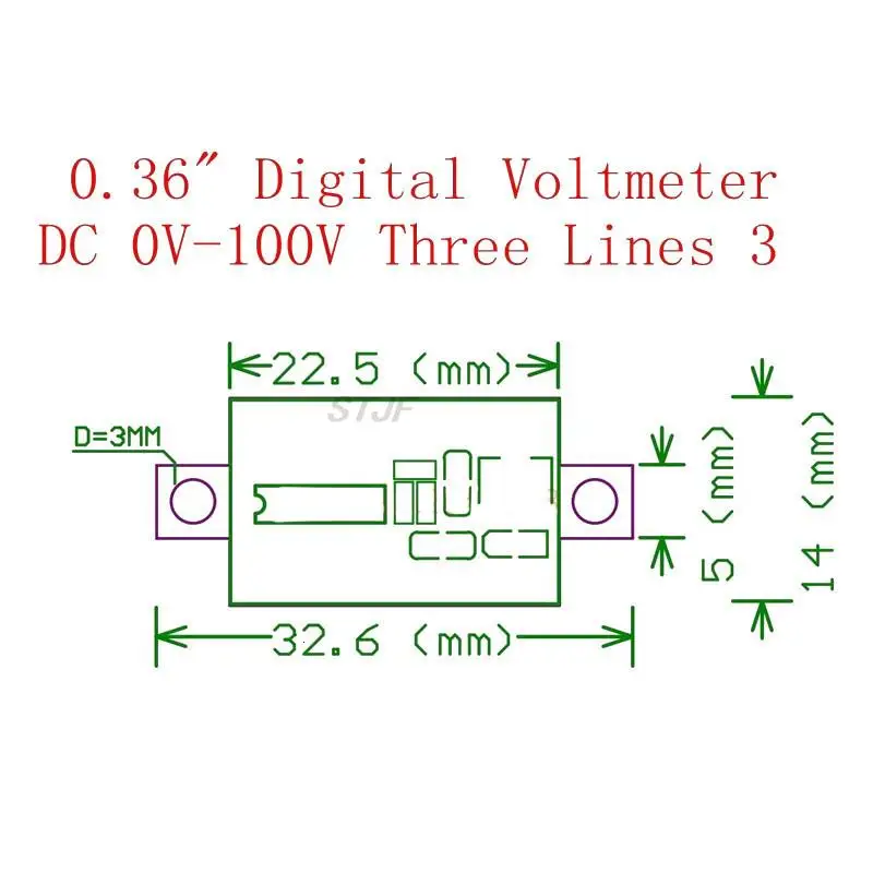 The voltmeter is small, only 0.36 inches, range DC DC0-100V, 2 and 3-wire generic products, to break the routine voltmeter, is the latest design, can work directly on 5V, 9V, 12V, 24V and other circuits, without regulation. With three wiring, easy access to car / battery car / motorcycle car line, with reverse polarity protection function, line reversed not burn. Used to monitor battery voltage, grasp the battery voltage state, it can also be used for other products voltage measurement applications.