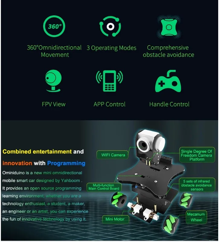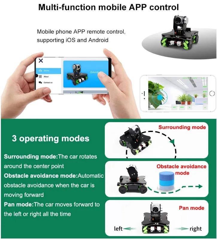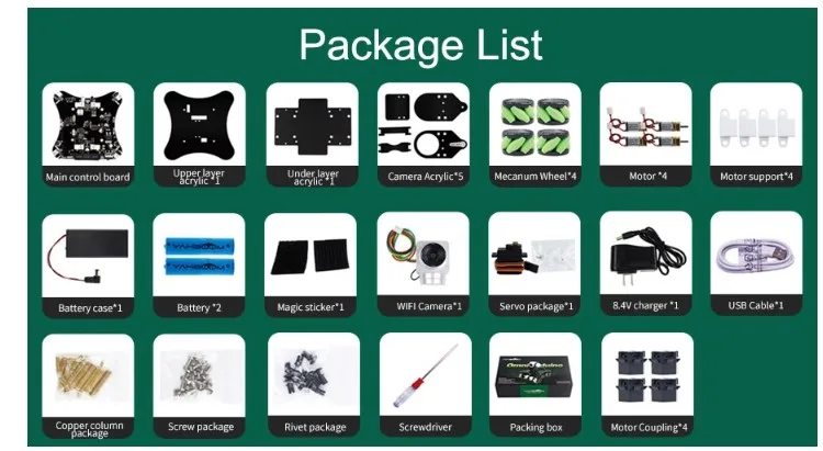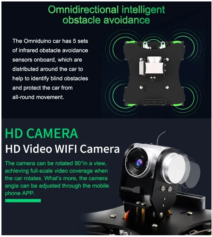 1.High-quality Mecanumwheel, acrylic board and exclusive camera bracket, combined with exquisite structural design, create a unique shape on the market.