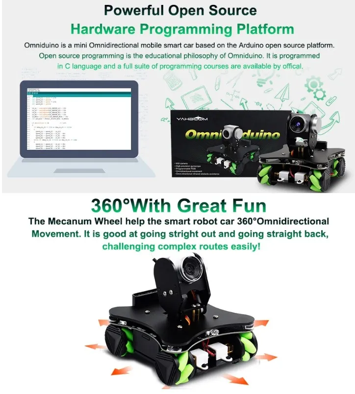 Omniduino is a mini omnidirectional robot car with ATmega328P chip as the processor, which can easily achieve 360 ° movement in any direction.