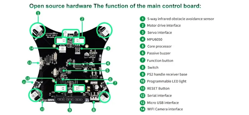 4.Two remote control methods: Android/iOS mobile APP remote control, PS2 controller remote control (option).