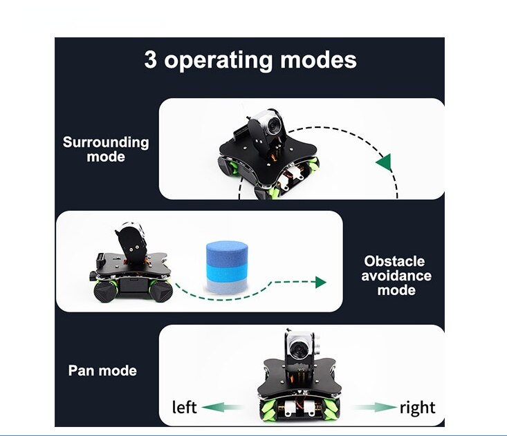 3.It can realize a variety of games such as surround mode, obstacle avoidance mode,translationmode, play music, marquee, take picture and video, etc.