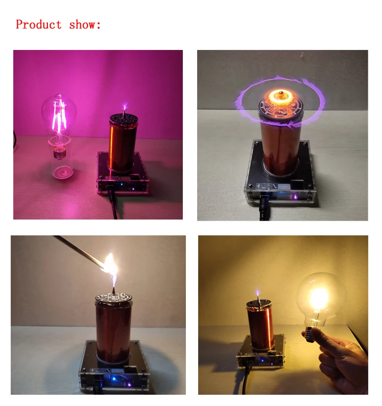 PLLSSTC is a solid-state Tesla coil controlled by a phase-locked loop circuit, which has the characteristics of continuous operation; the arc generally appears as a hairy cluster, the temperature is higher, and it can ignite combustible materials such as paper or mosquitoes, but its comparison What stands out is its characteristic in music modulation, which can play music files of any format, and at the same time has a relatively high-definition sound quality, which can be used as a plasma speaker. In addition, the demonstration of plasmonic windmills, wireless lighting and other aspects also have a unique and outstanding performance.