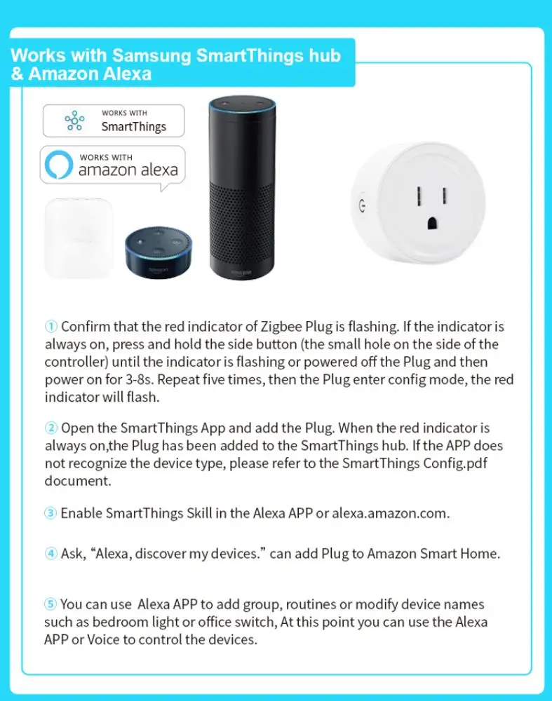 Support access to SmartThings hub,Amazon Echo Plus,Amazon Echo Show(2nd), eWeLink hub or other HA and Zigbee 3.0 hub.