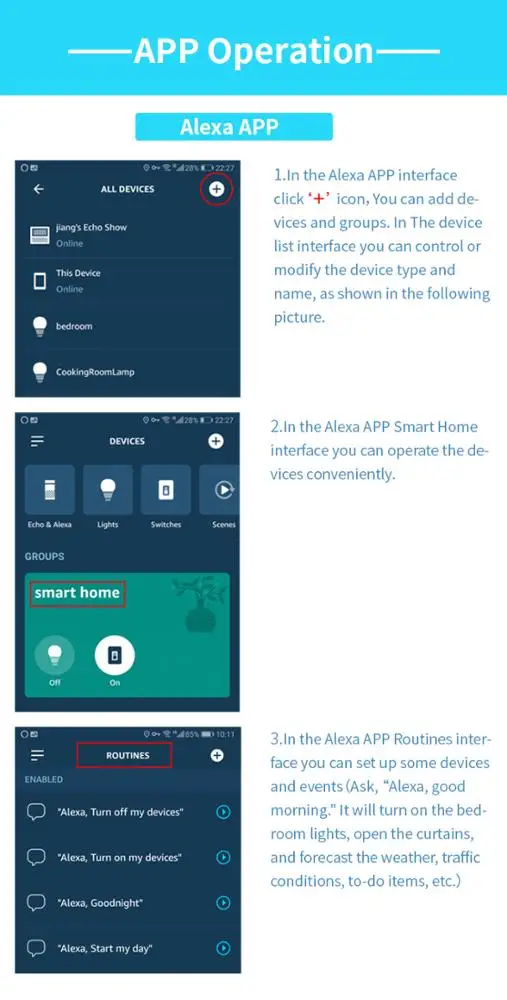 After paired,you can use the Alexa APP or Voice to control the devices.