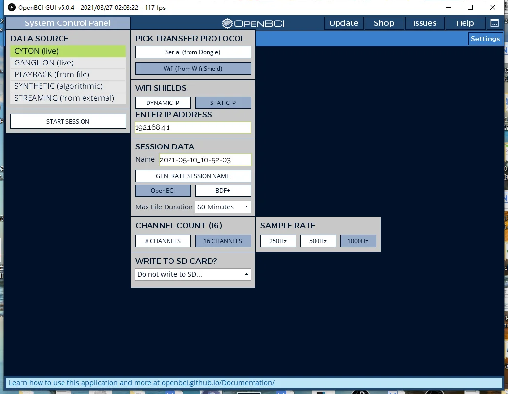 When connecting the 16-channel acquisition board, select WiFi mode, 16 channels, and 1K sampling rate.