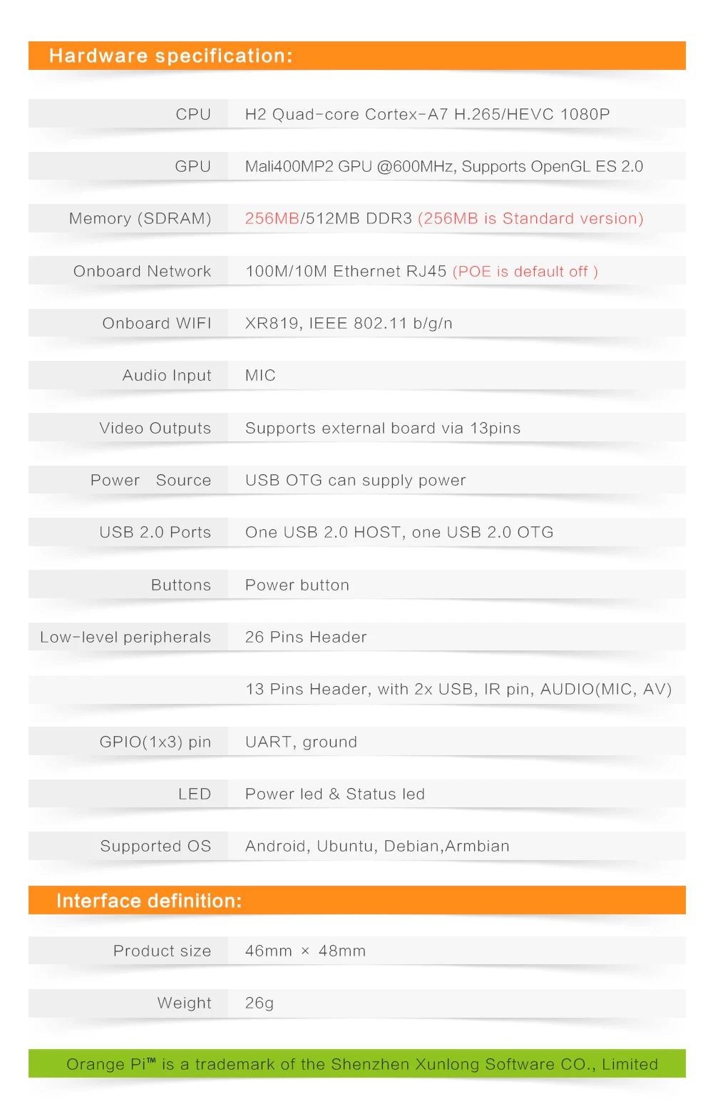 Custom Orange PI Zero LTS 512MB+Expansion Board+Black Case, Mini Single Board Set Manufacturer