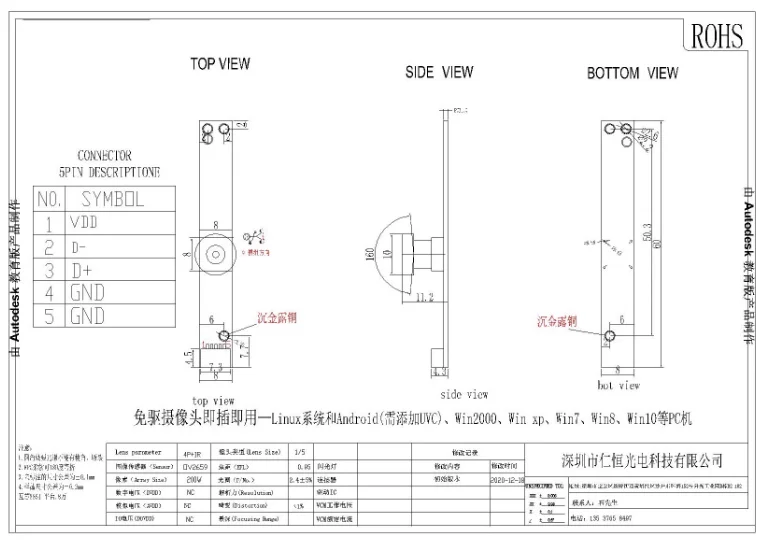 Custom OV2659 camera module 2 megapixel USB drive free camera module with built-in laptop all-in-one machine