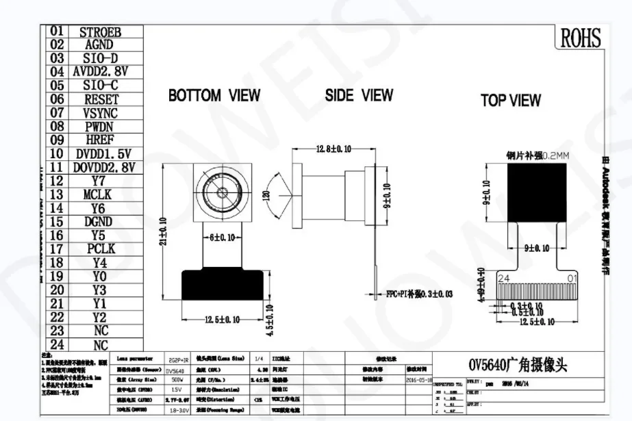 Custom OV5640 camera module wide-angle 120 degrees 160 degrees 650NM 850NM 5 million pixel 24PIN 0.5MM Pitch
