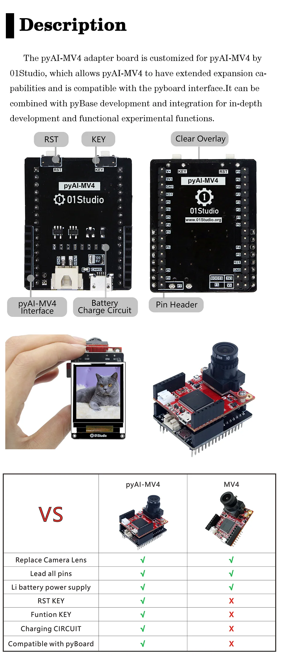 Custom PCB 01Studido PyAI-MV4 adapter board H7 Cam 3 M7 Compatible With Met OpenMV4 Pyboard Interface Pybase