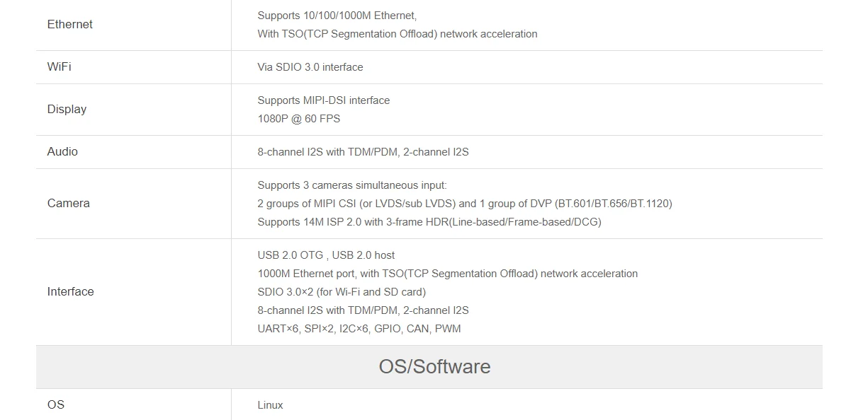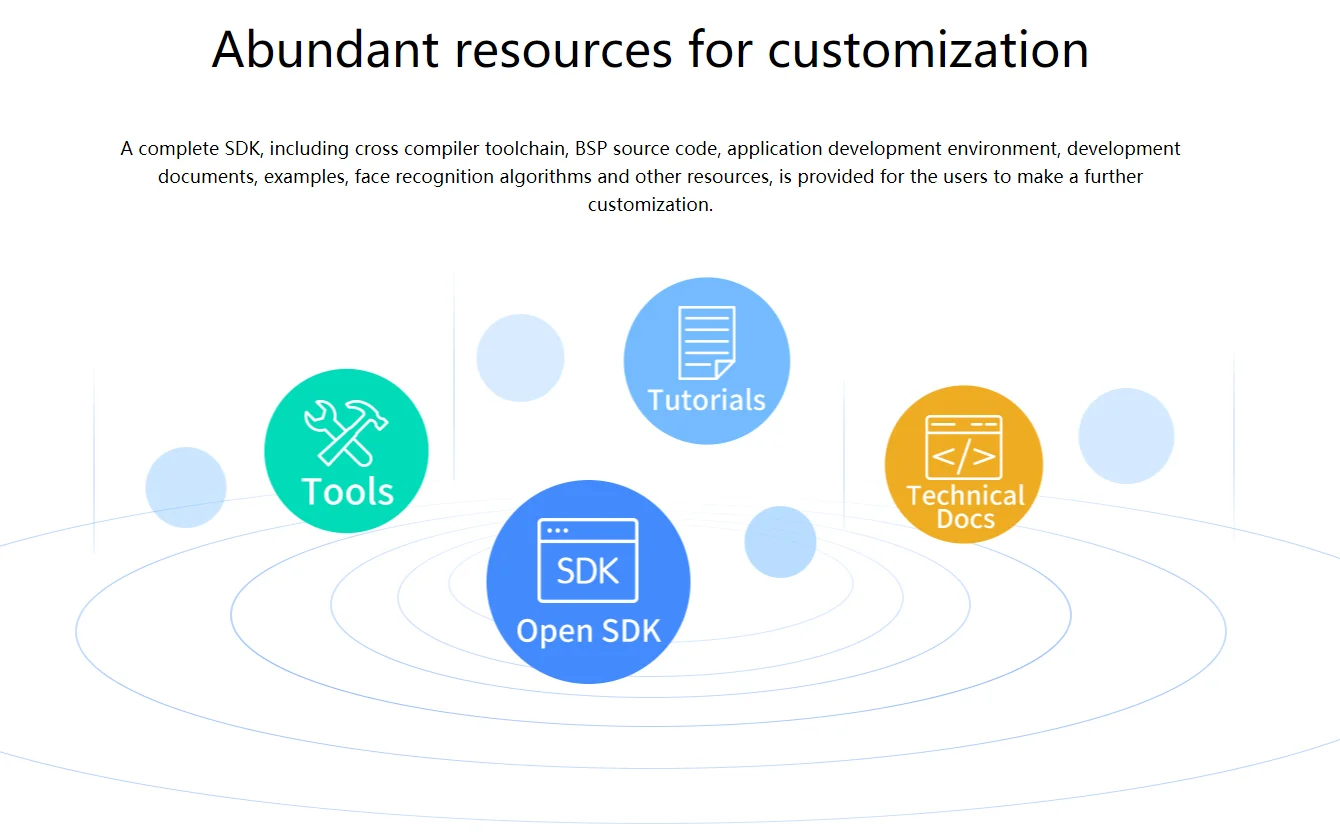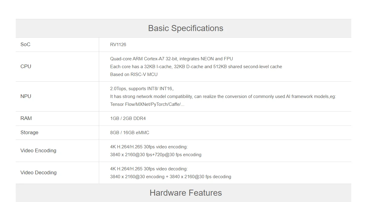 Equipped with high-performance quad-core AI vision processor with built-in AI neural network acceleration NPU, the core board has capable computing power up to 2.0 Tops, which can achieve efficient face recognition and detection; it supports multi-channel video coding and decoding and provides various interfaces. It can be flexibly applied to face recognition, gesture recognition, gate access control and other fields.