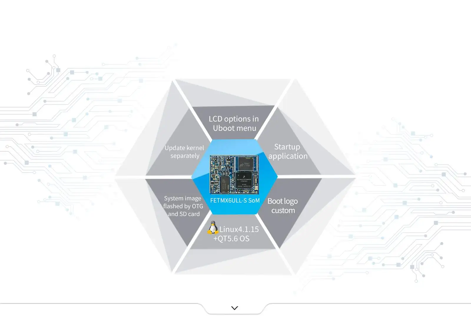 SoM supported with Linux4.1.15/ QT5.6, can support OTG, SD/ TF card flashing mode, and can support separately update kernel