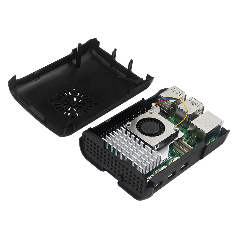 Custom Pi 5 ABS Case Black Plastic Shell Compatible for Active Cooler Speed Adjustable PWM Fan for RPI 5 Pi5