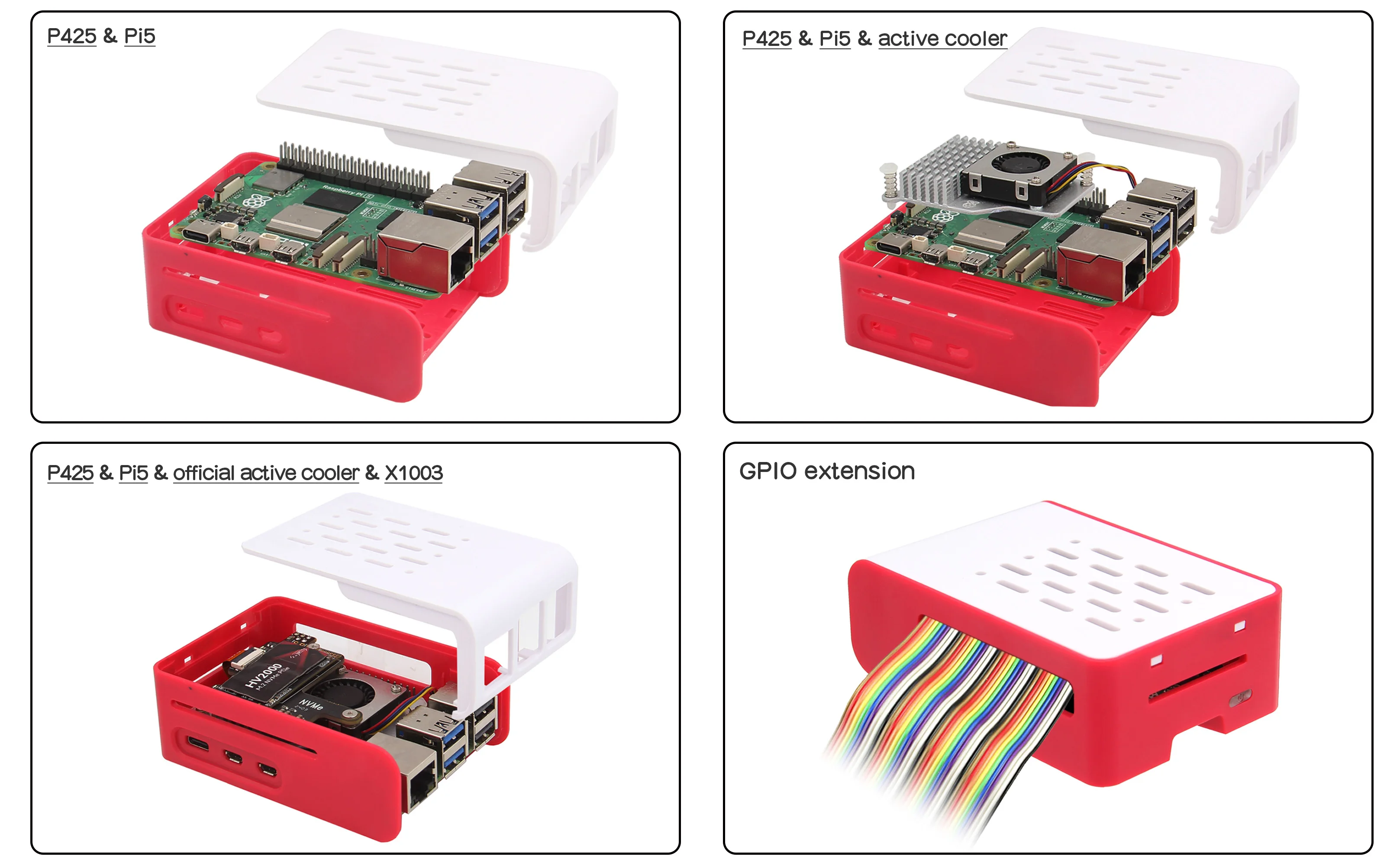 This case also supports Geekworm X1003 and official active cooler inside the case.