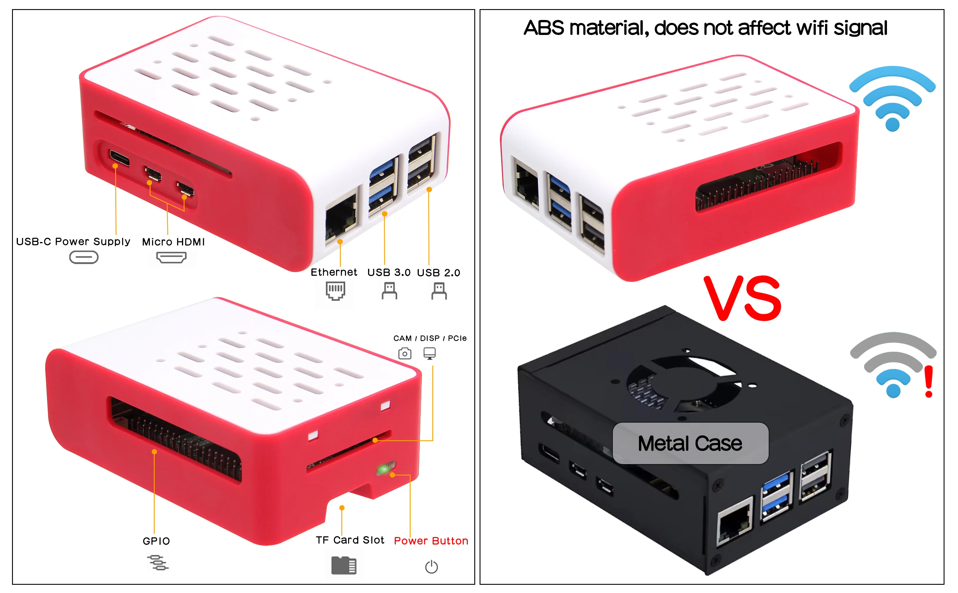 P425 is a new design ABS case to protect your Raspberry Pi 5 8GB / 4GB. It can accurately access to ports including gpio, usb-c power jack, micro HDMI ports, usb ports, Ethernet jack, SD card slot and power button.