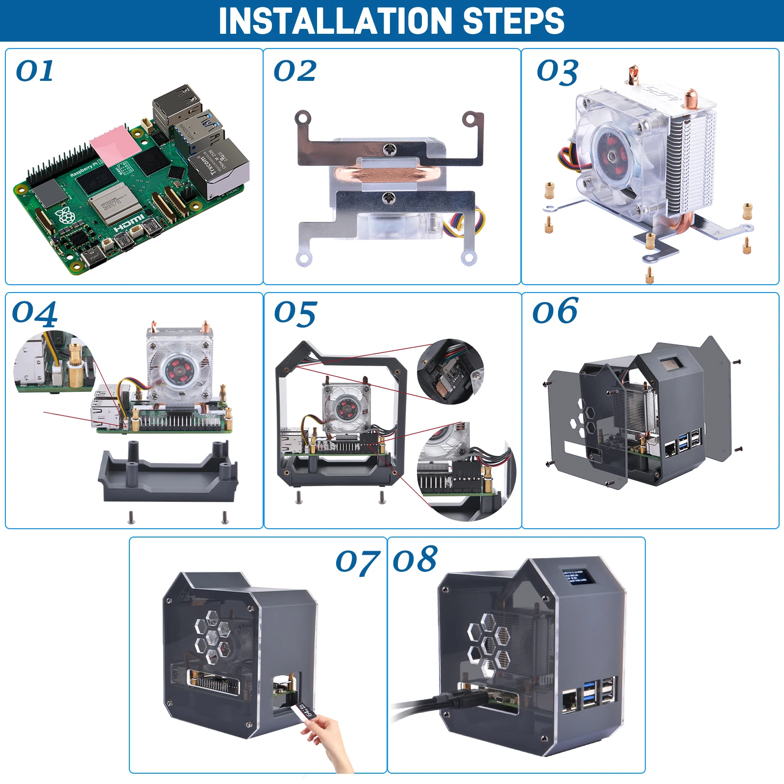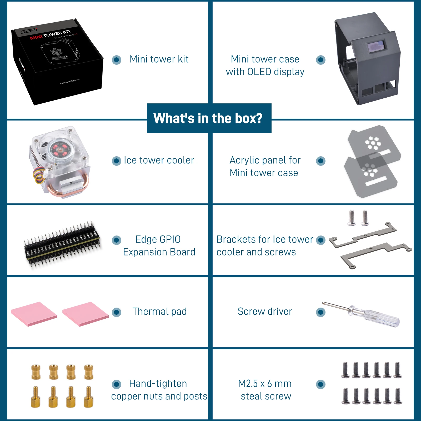 • ICE Tower Cooler: Equipped with an efficient ICE Tower Cooler to effectively lower the temperature of the Raspberry Pi 5, enhancing performance and stability.