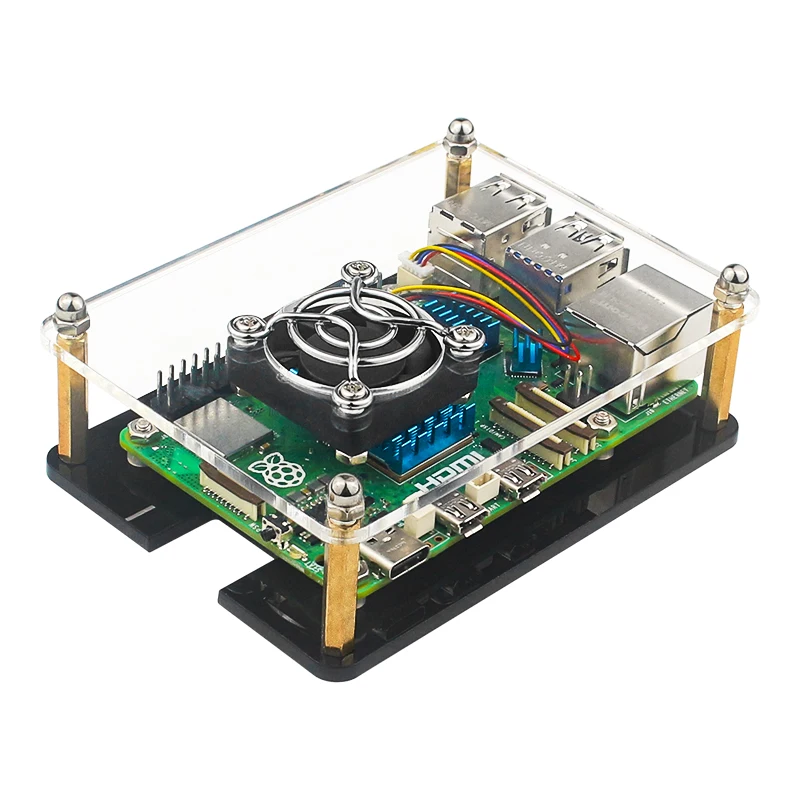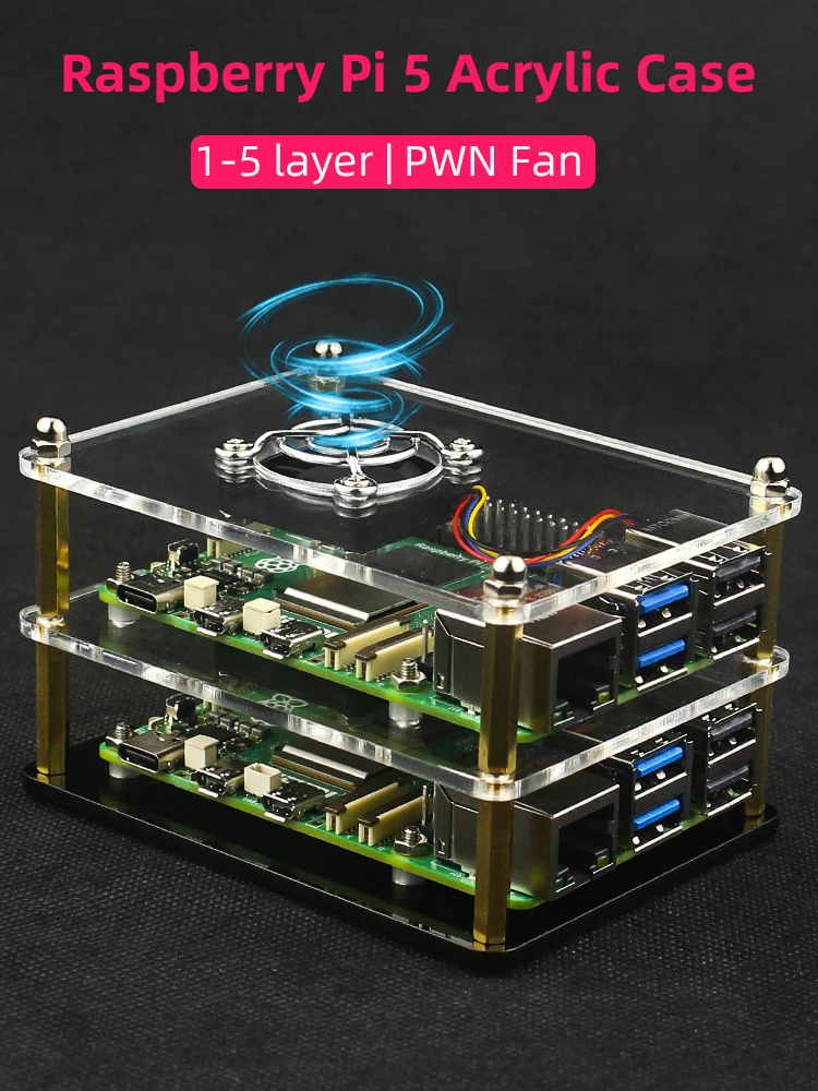 Custom Pi 5 Acrylic Case Transparent Shell with PWN Cooling Fan Stackable Plate Case for RPI 5 Pi5 Cluster DIY Electronic
