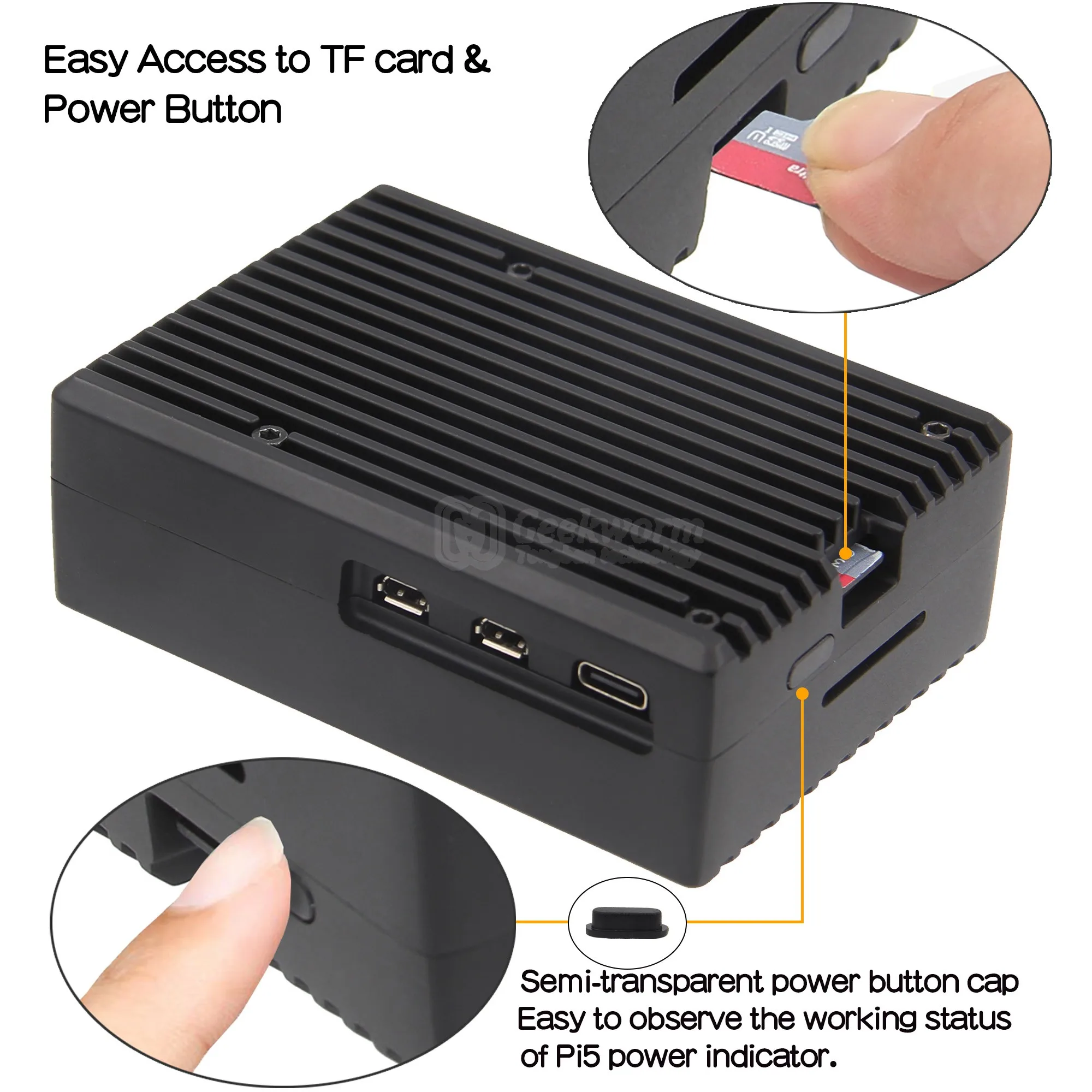 Semi-transparent power button cap:easy to observe the working status of Pi5 power indicator