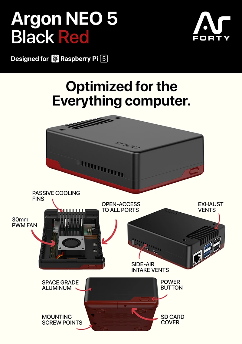 1. The Argon NEO 5 is redesigned specifically to meet the high demands of the Raspberry Pi 5.