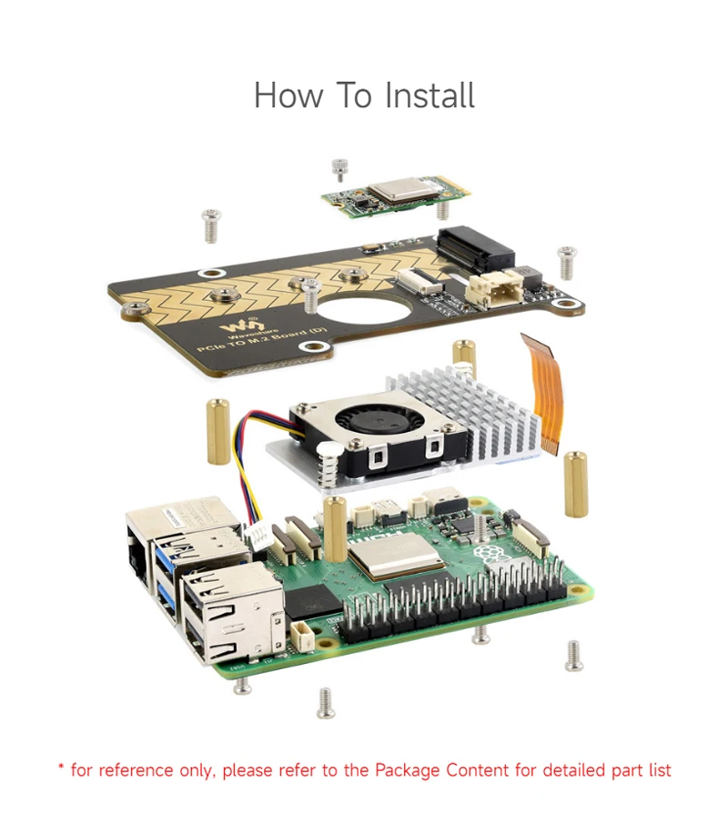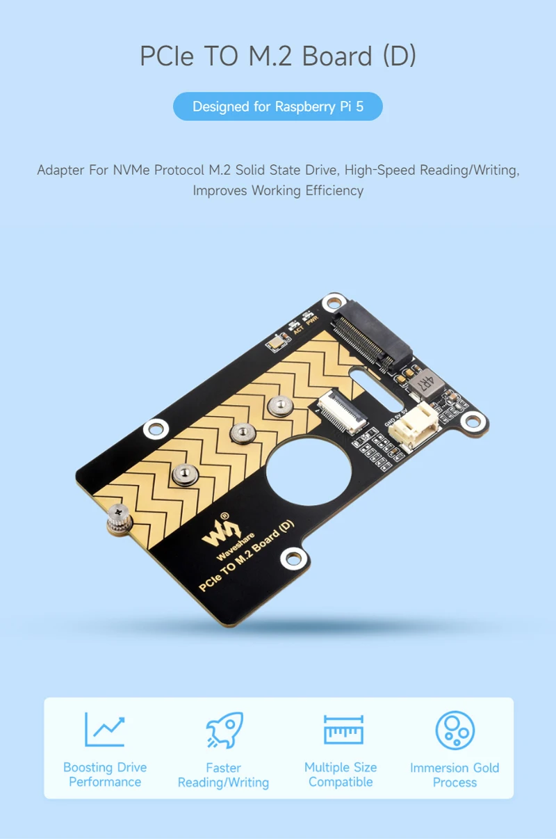 Raspberry Pi 5 PCIe To M.2 Adapter Board (D) NVMe M.2 SSD 2280 / 2260 / 2242 / 2230 Size Gen2 Gen3 Support for RPi 5