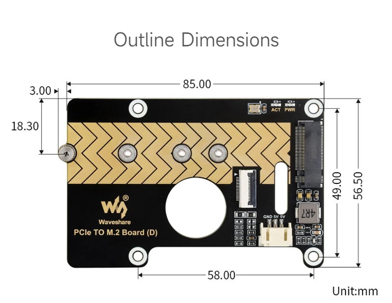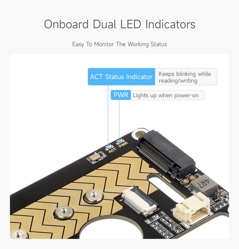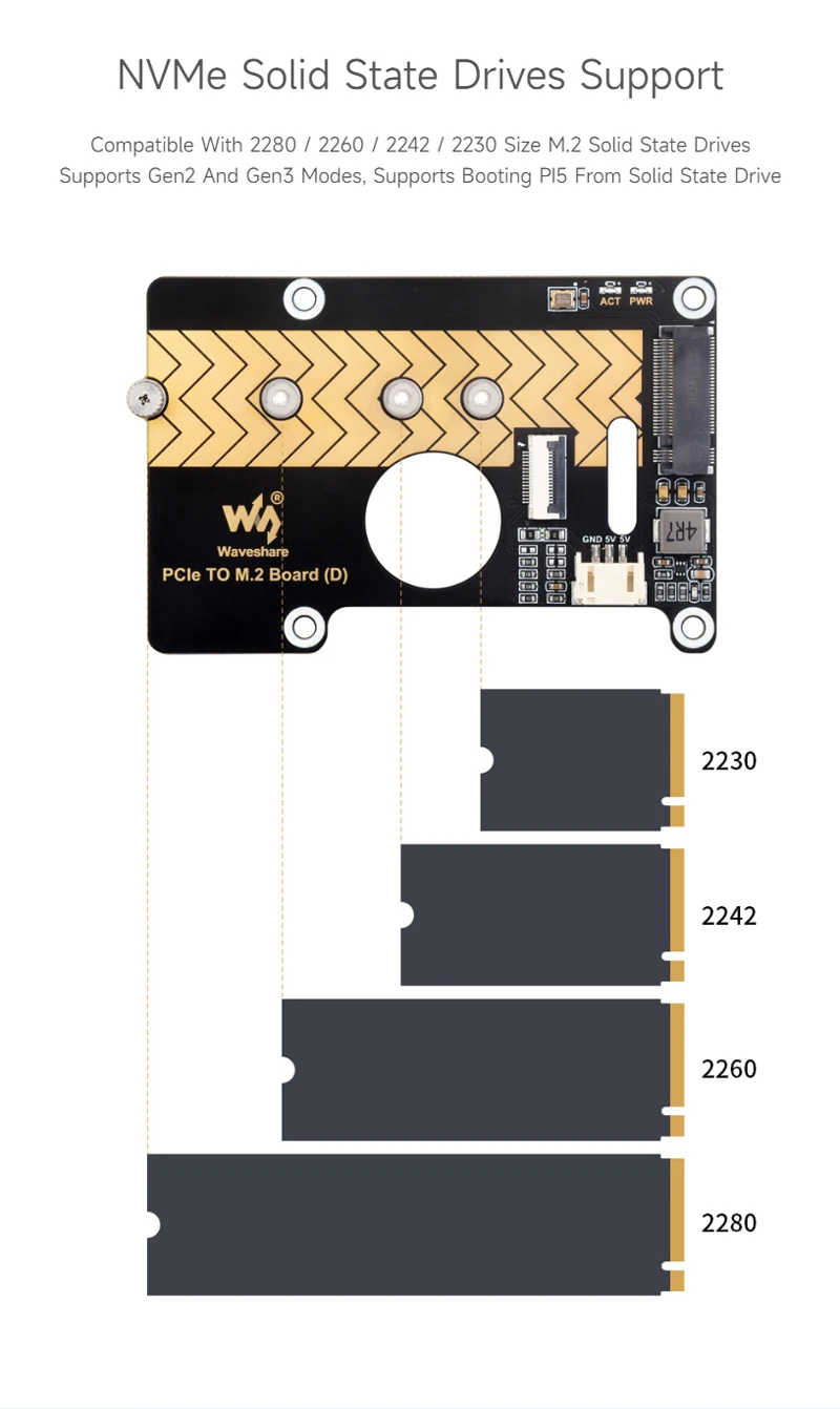Custom Pi 5 PCIe To M.2 Adapter Board (D) NVMe M.2 SSD 2280 / 2260 / 2242 / 2230 Size Gen2 Gen3 Support for RPi 5