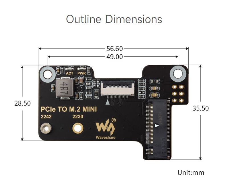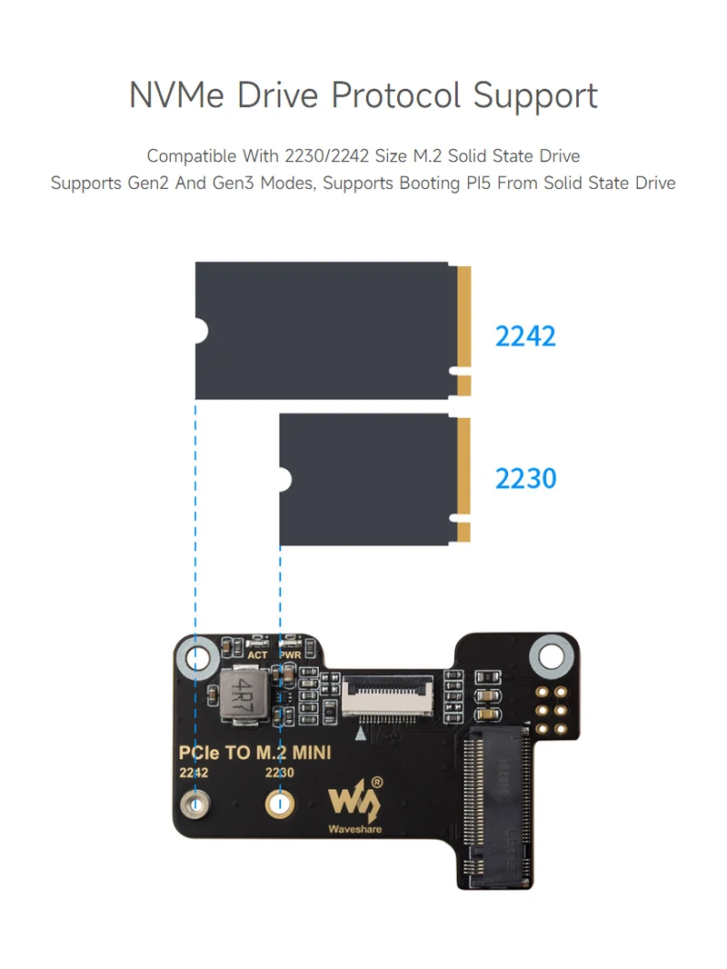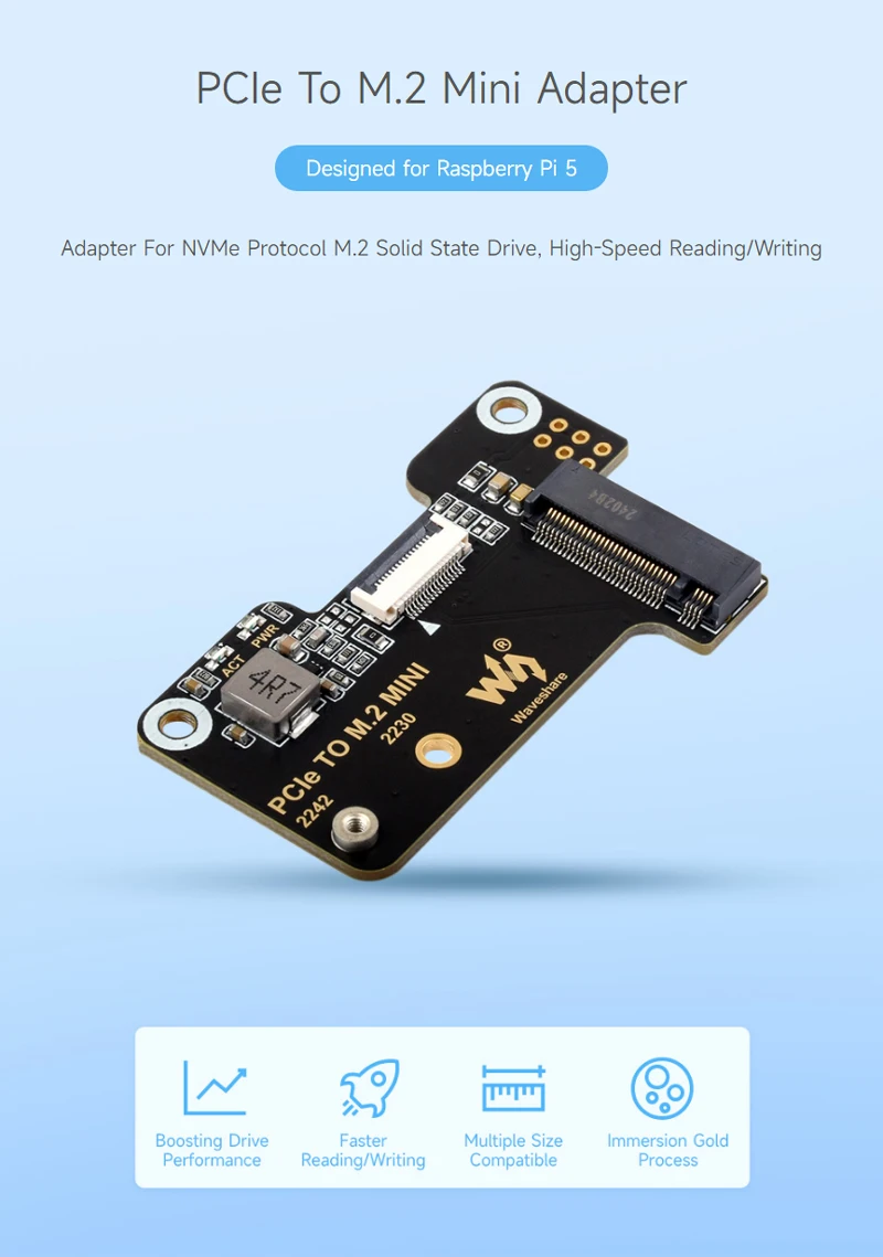 Custom Pi 5 PCIe To M.2 Mini Adapter Supports NVMe Protocol M.2 Solid State Drive NVMe HAT for Pi 5