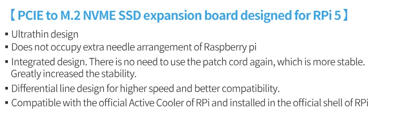 Custom Pi 5 PCIE to M.2 NVME SSD Expansion Board Compatible with Official Active Cooler Mini HAT Board for Pi 5