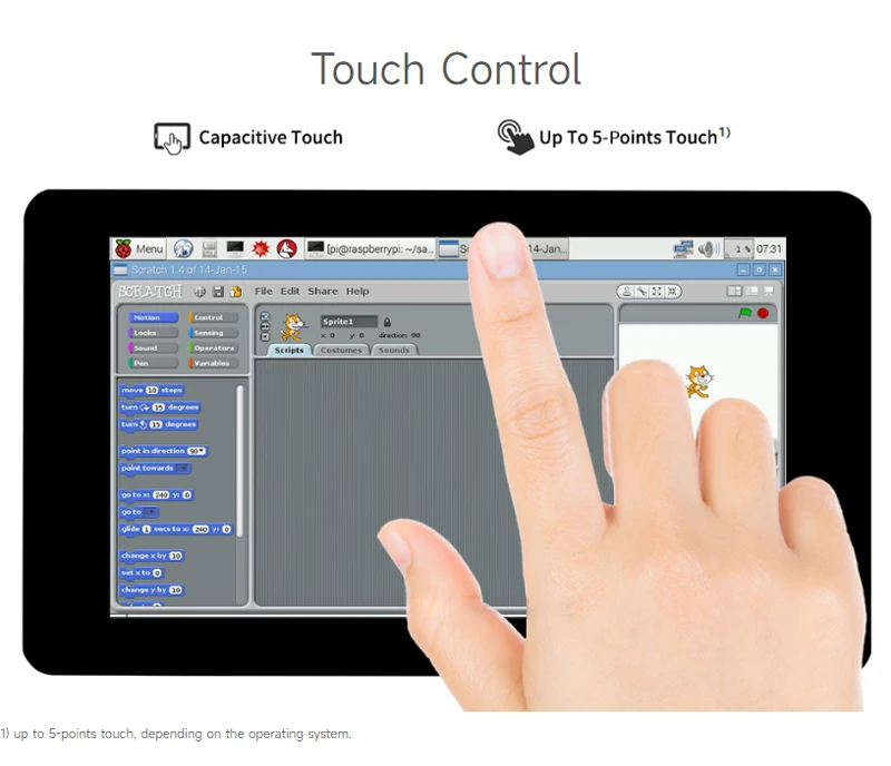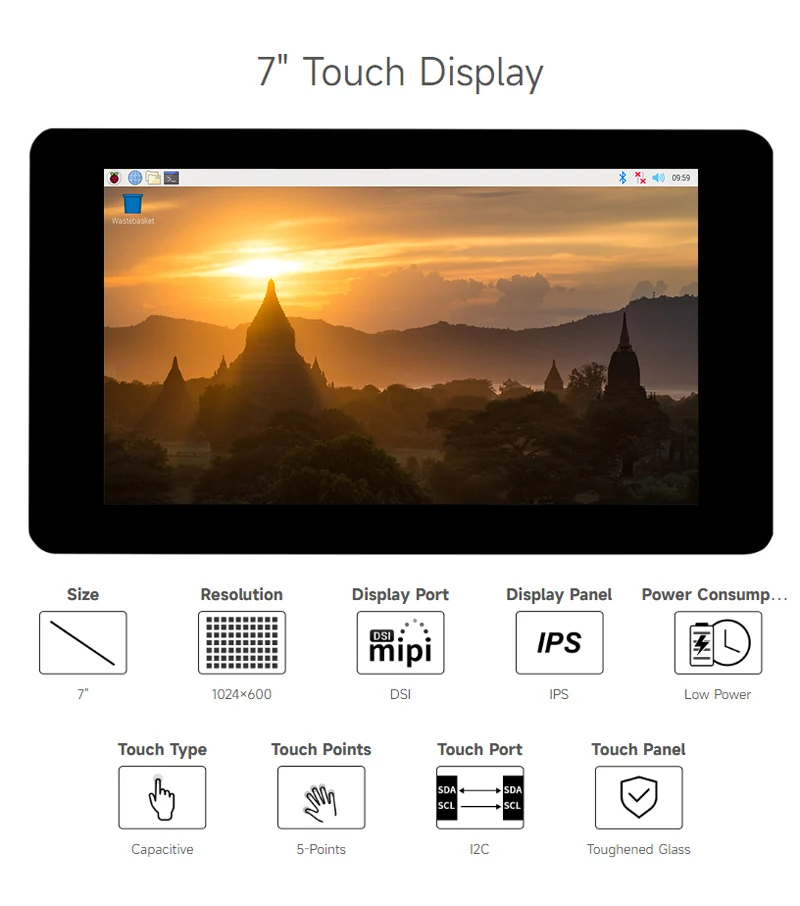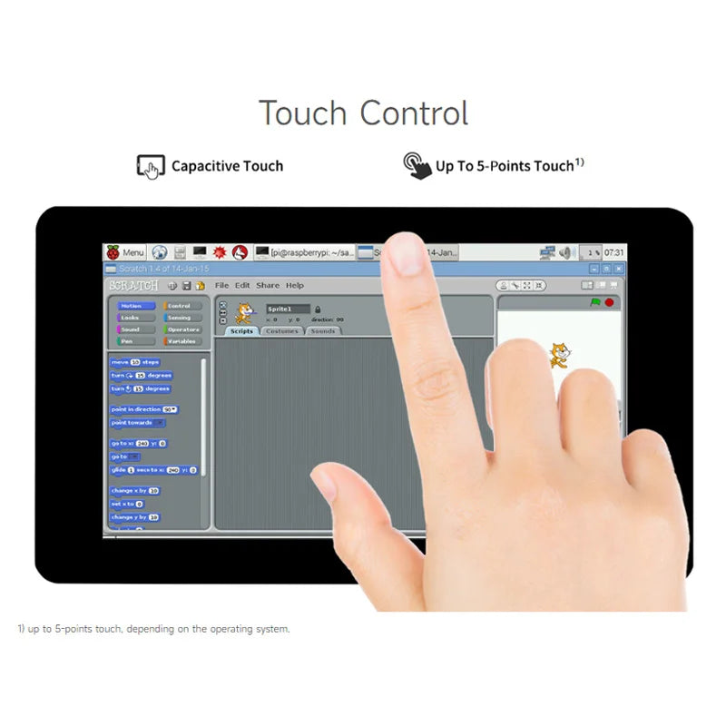 Raspberry Pi 7 Inch IPS Display 1024x600 Capacitive Touch Screen 5 Points Adjustable Brightness LCD for Raspberry Pi 5 4