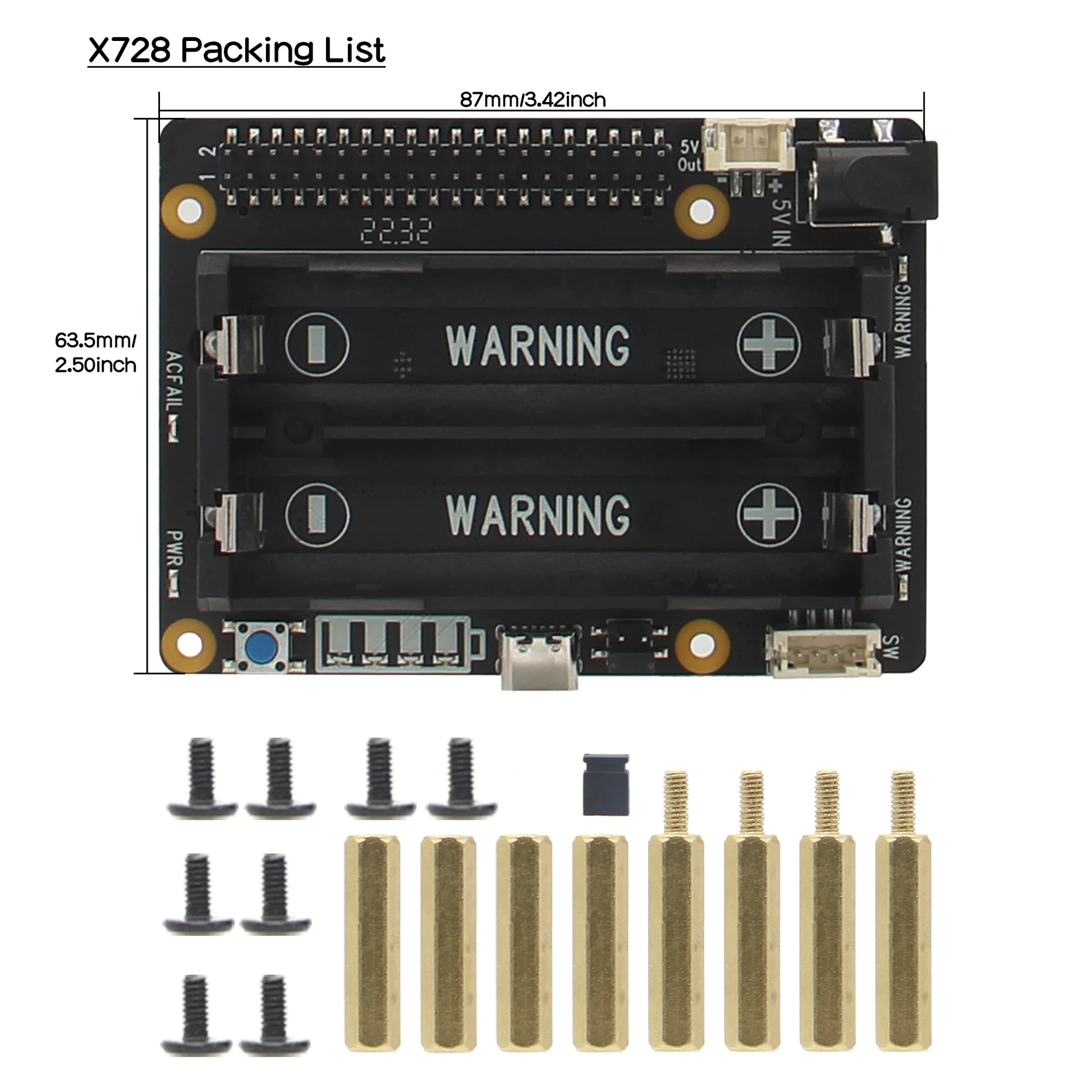 Custom Pi UPS HAT, X728 V2.5 Power Mangement Board for Pi 5 /4B/3B+/3B