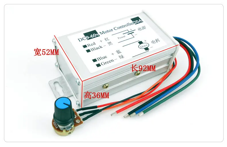 PWM DC motor stepless speed controller 12V 24V 60V MAX 20A Pulse