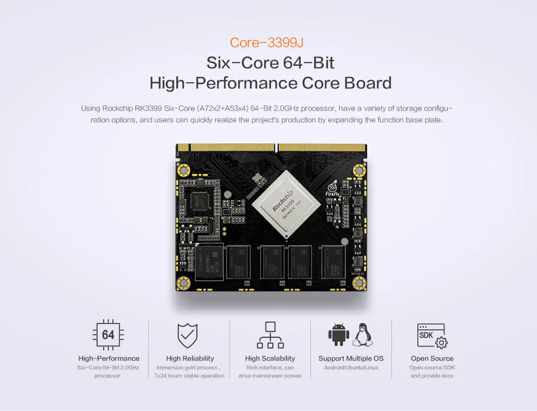 Custom RK3399 Core Board Core-3399J Industrial PC Board A72+A53 Six-Core 64-Bit 2.0GHz Supports Multiple OS Ubuntu Android 2GB+16GB Manufacturer