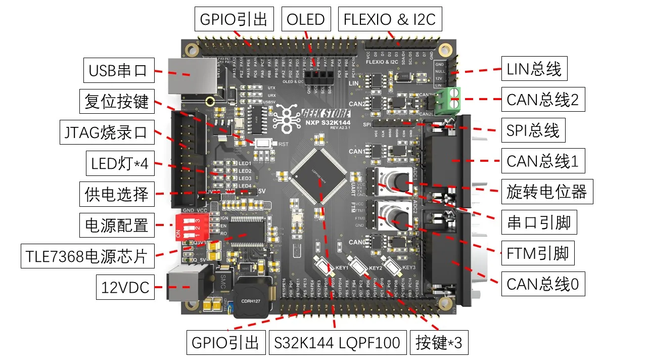 Custom S32K144 development board evaluation board ARM has routine source code LIN 3-way CAN Manufacturer