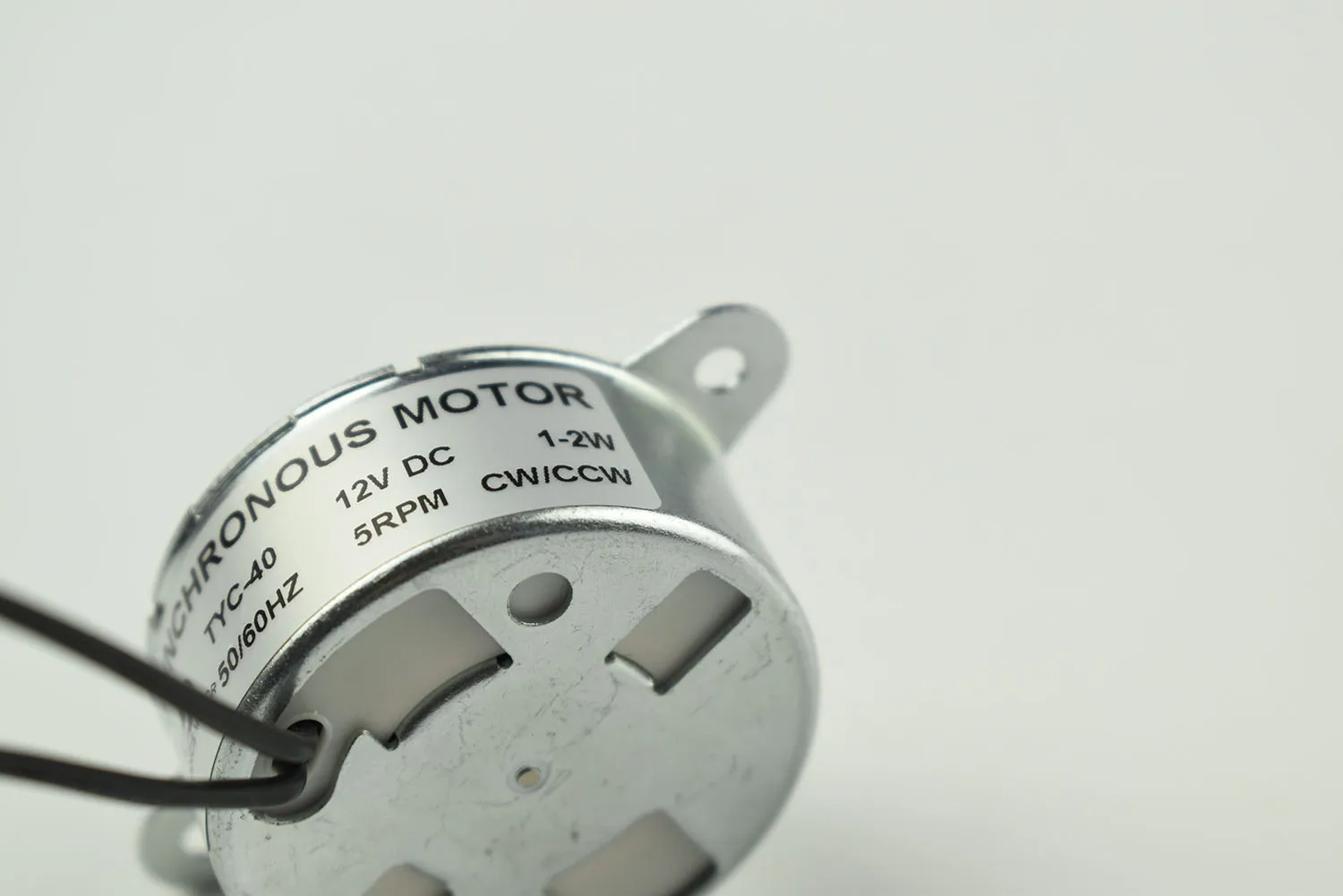 This is a TYC-40 DC 12V 5RPM CW/CCW synchronous motor,small power consumption, low noise, small size, light weight, easy to use. The reduction gear is combination of metal/plastic to ensure the gear working continuously and quietly. We promise we will tested ever motor before shipment.