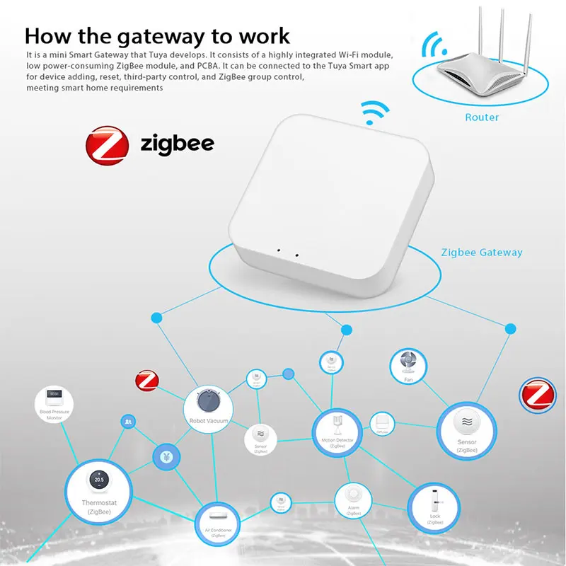 Product Features:1.A must for all ZigBee products:This is a hub that connects to a variety of ZigBee smart products and is the bridge,as well as a