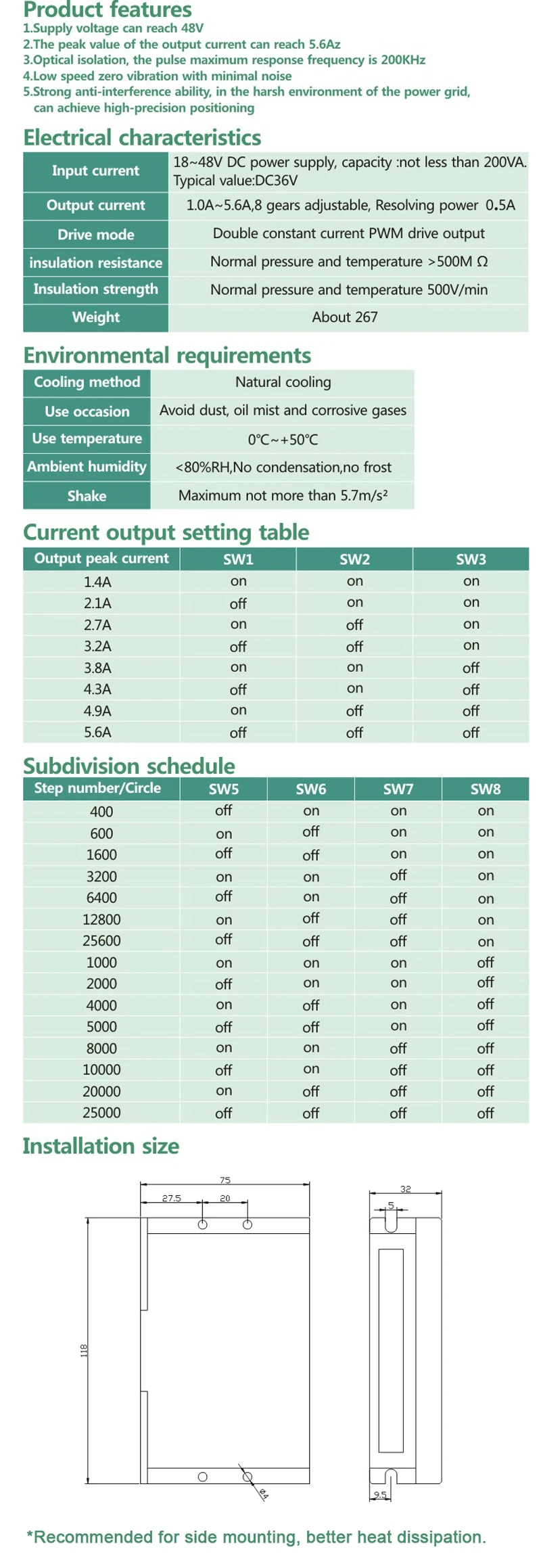 Custom Stepper motor driver DM556 2 phase 42/57 Stepping Motor Controller 24V-50V NEMA23 NEMA34 Manufacturer
