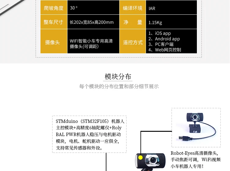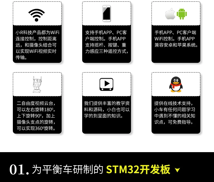 Custom STM32 Two-Wheel Balance Car WiFi Wireless Video Robot Android Apple PC Control DIY Manufacturer