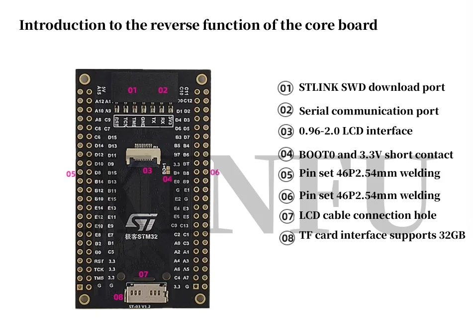 01. The download port adopts a pin to pin insertion method. Users only need to first insert the DuPont wire into the pin according to the wire sequence, and then insert the pin into the SWD pin of the motherboard