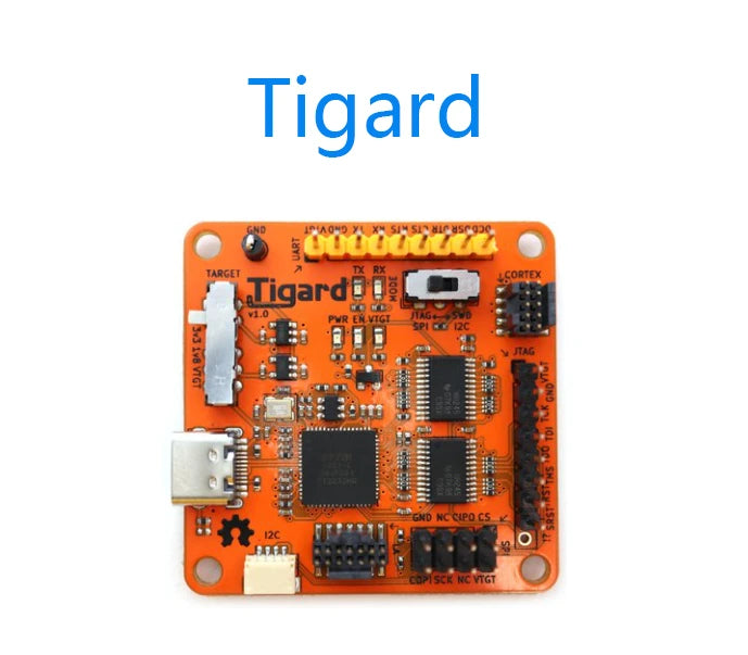 Tigard combines support for all of the most-used interfaces and most-needed features on to a simple board. As a drop-in replacement for dozens of other hardware tools based on FTDI chips, it has native support from a number of commonly used hardware tools like OpenOCD, FlashROM, and more.