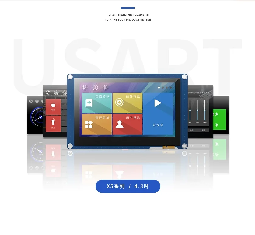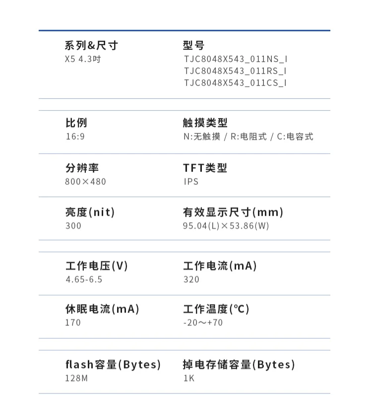 4.3 inch resistor/capacitor/touchless LCD display screen with 800 * 480 resolution, IPS full view screen, supporting RS232/TTL serial port