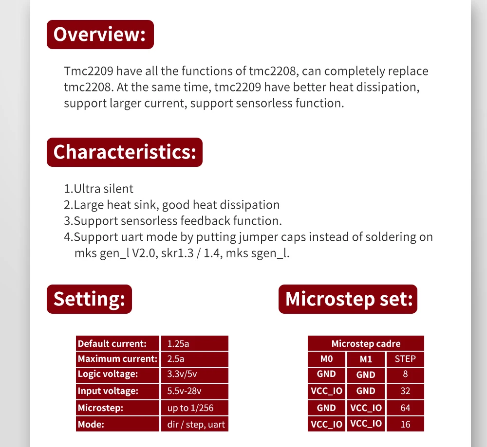 5Pcs Twotrees TMC2209 Nema17 Stepper Motor Driver Stepstick 2.5A Uart Ultra Silent For 3D Printer Motherboard MKS Gen Robin