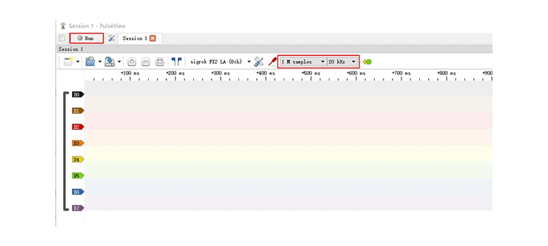 2.Configure channels and sampling rate, the click "Run" button in the top left corner to sample data