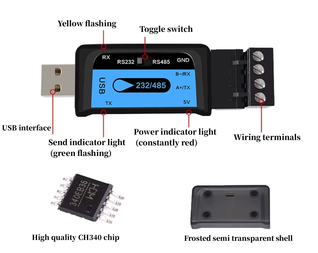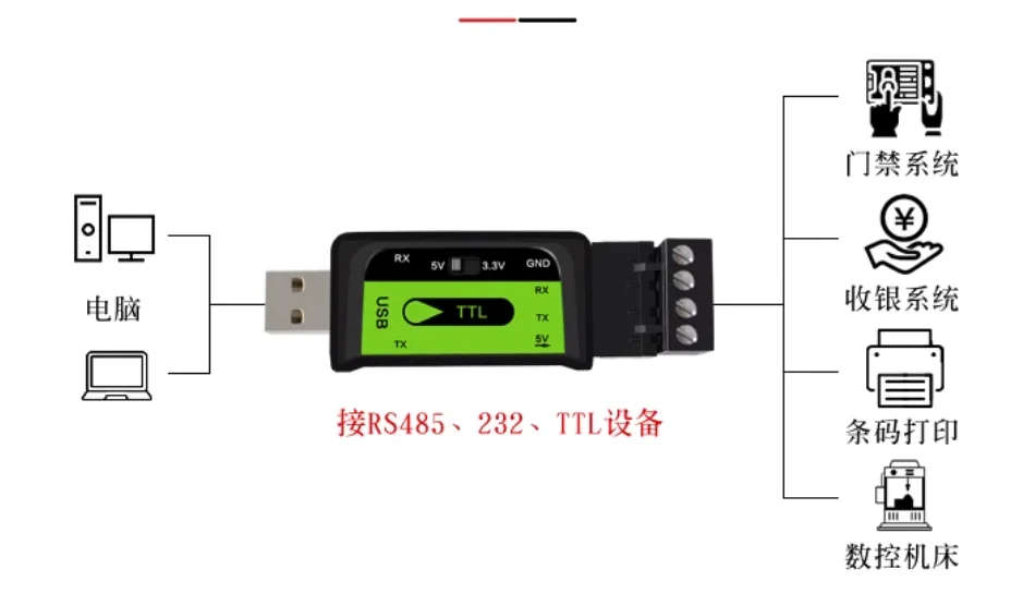 Custom USB to 485/TTL serial cable industrial 232 to interface communication TVS transient protection bidirectional code converter