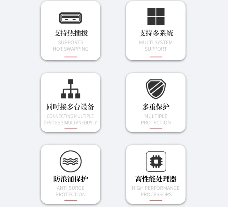 Safety: TVS transient suppression protection, surge protection, short circuit protection