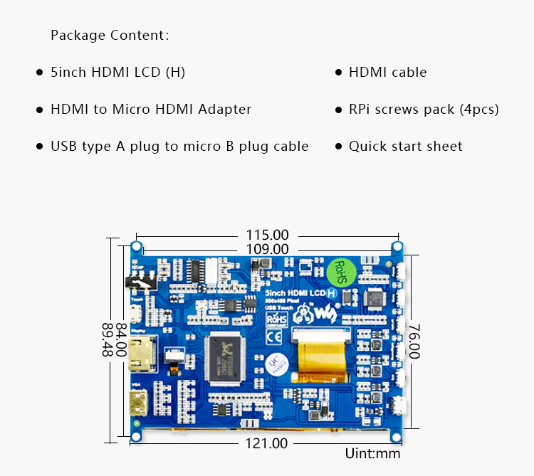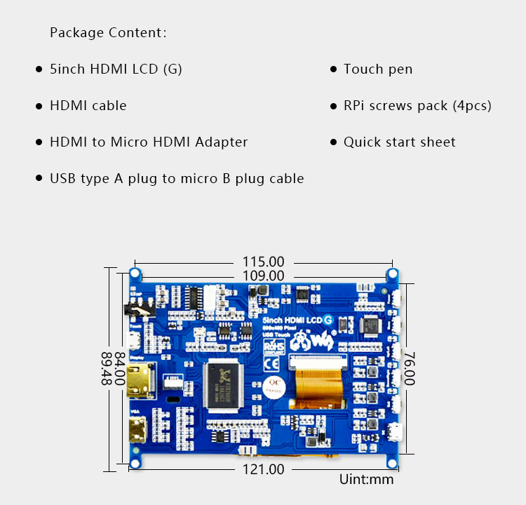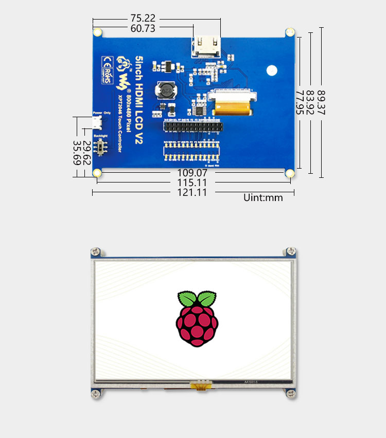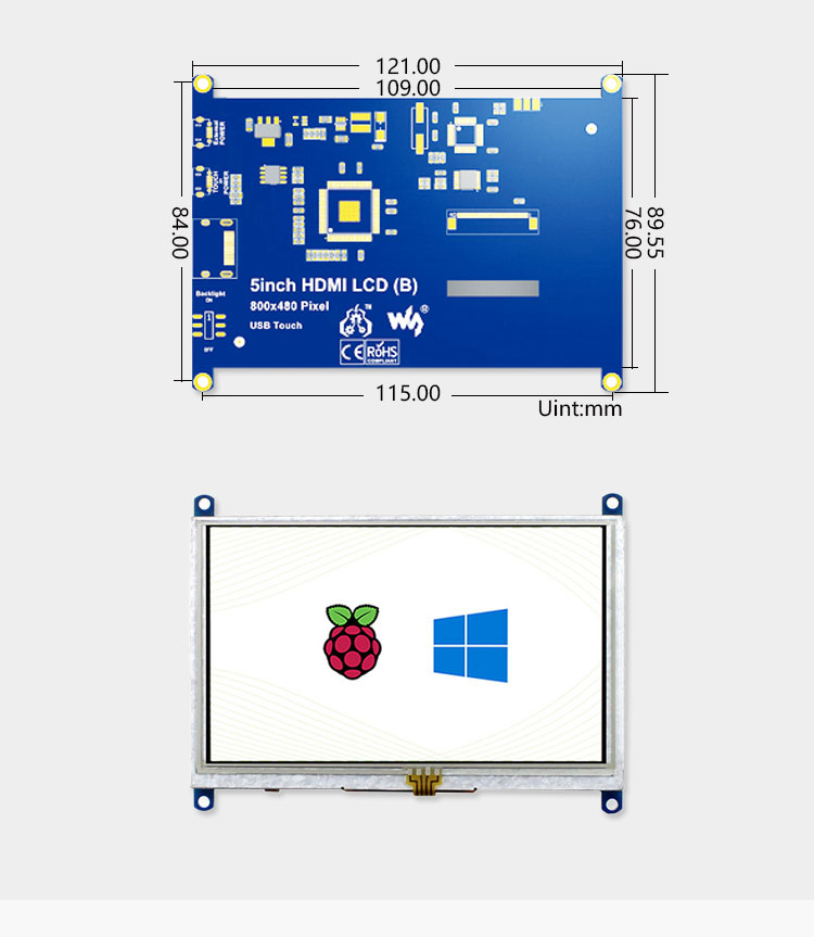 Custom Waveshare 5/5.5inch Raspberry Pi Touch Screen display HD LCD Work With Raspberry Pi 4/3/2 Jetson NANO Dev Kit Manufacturer