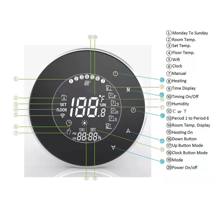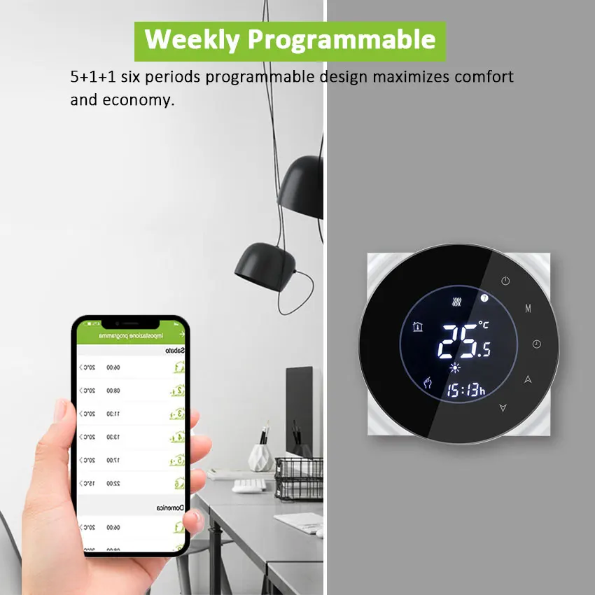 Custom WiFi fan coil programmable controller LCD touch screen digital indoor thermostat TUYA smart thermostat Manufacturer