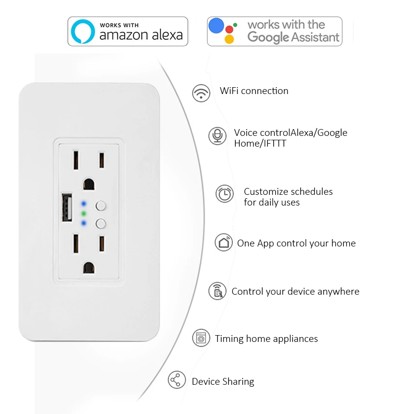 make less confusion. 2.Voice Control: Our smart wall sockets are compatible with Amazon Alexa and Google Home. Just control it via