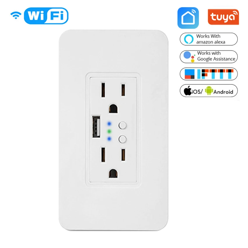 Custom Wifi Wall Power Electric Socket 2 USB Outlets Plug Timer Socket US Standard Smart Remote Control Work with Alexa Google Home Manufacturer