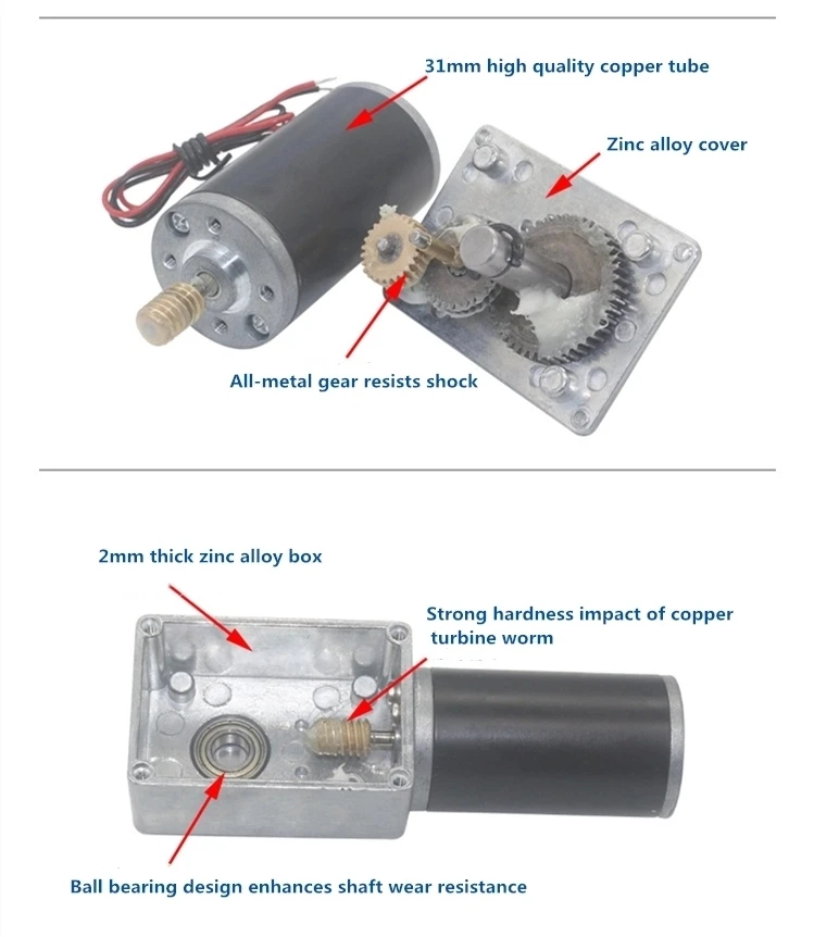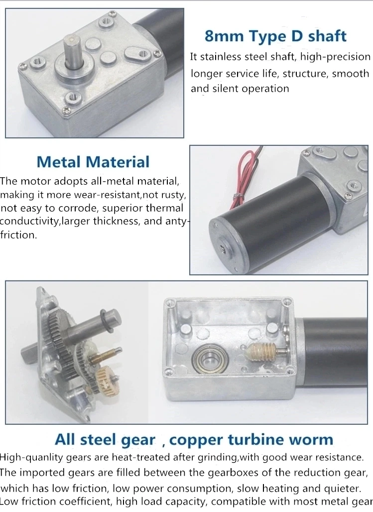 Custom Worm Gear Motor 12V 24V Reversed 12-470rpm DC Motor High Torque 3.4-70kg Self-Lock For Curtain Machine Billboard Home Equipment Manufacturer