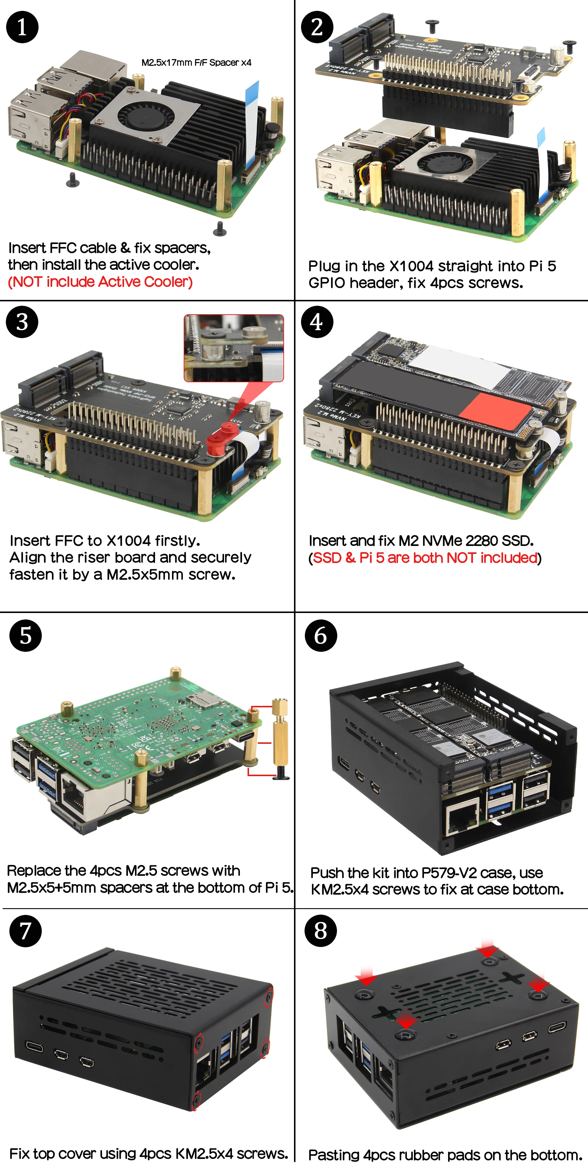 Compatible with Raspberry Pi 5 and NVMe M2 2280 SSD Only (Not include Pi 5 & SSD !!!)