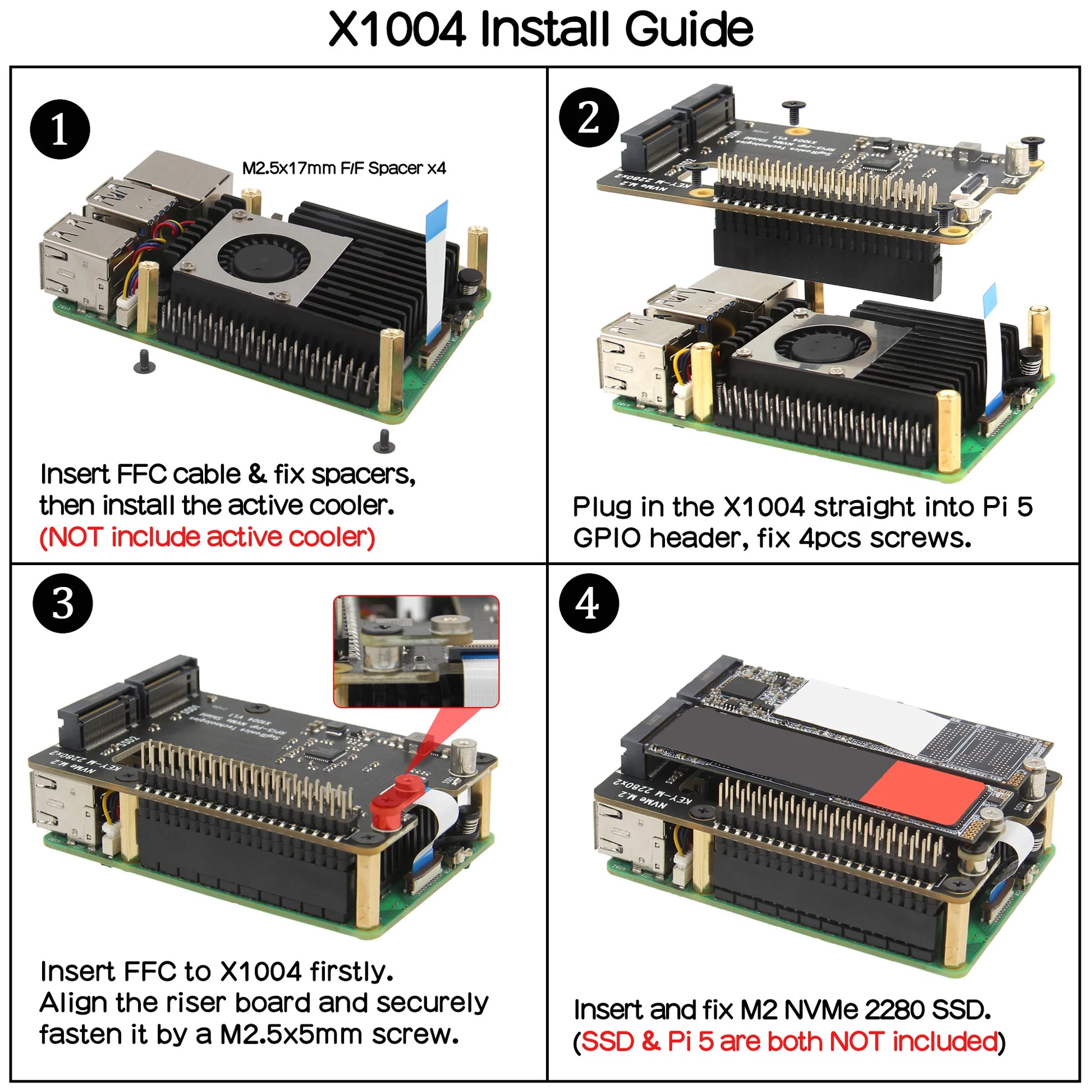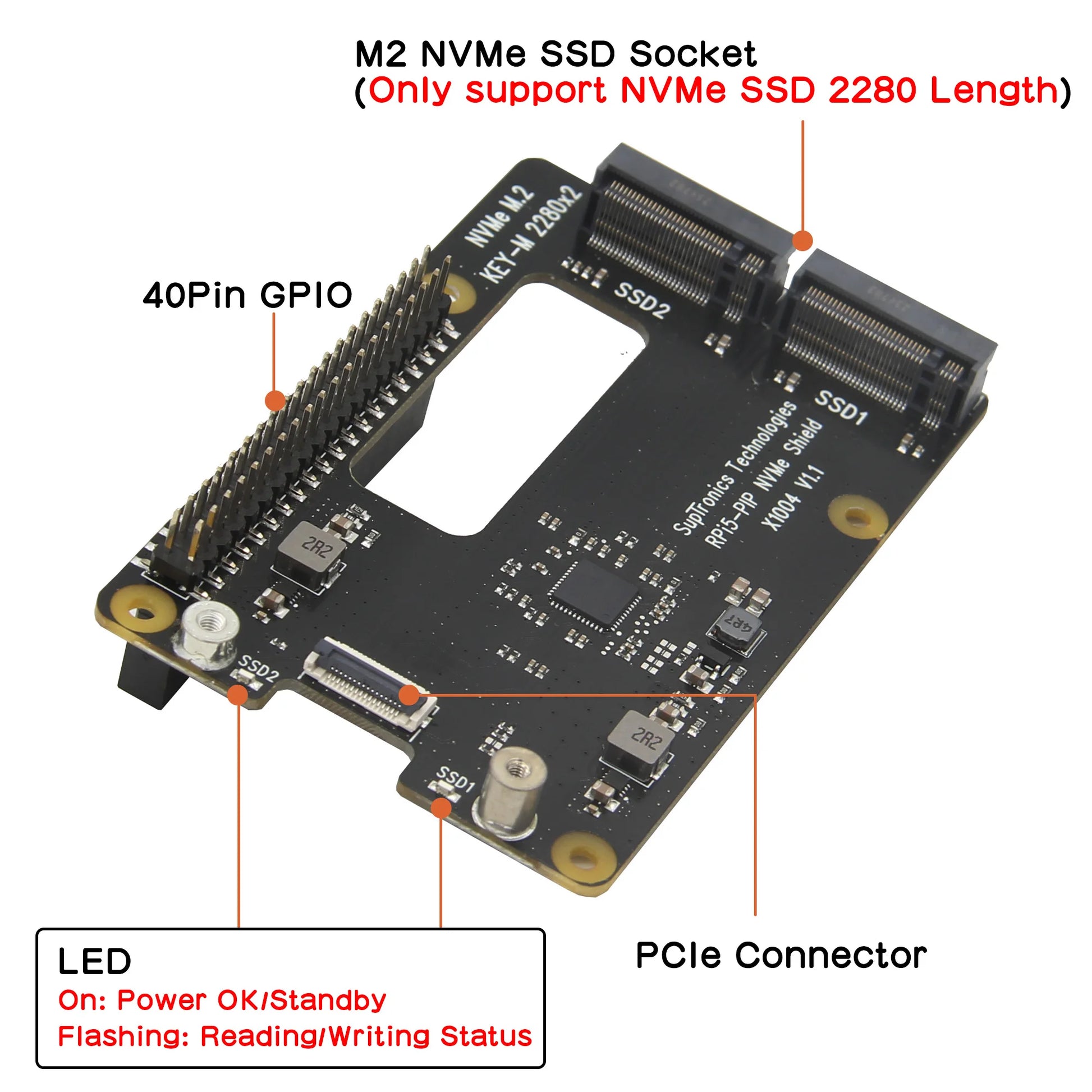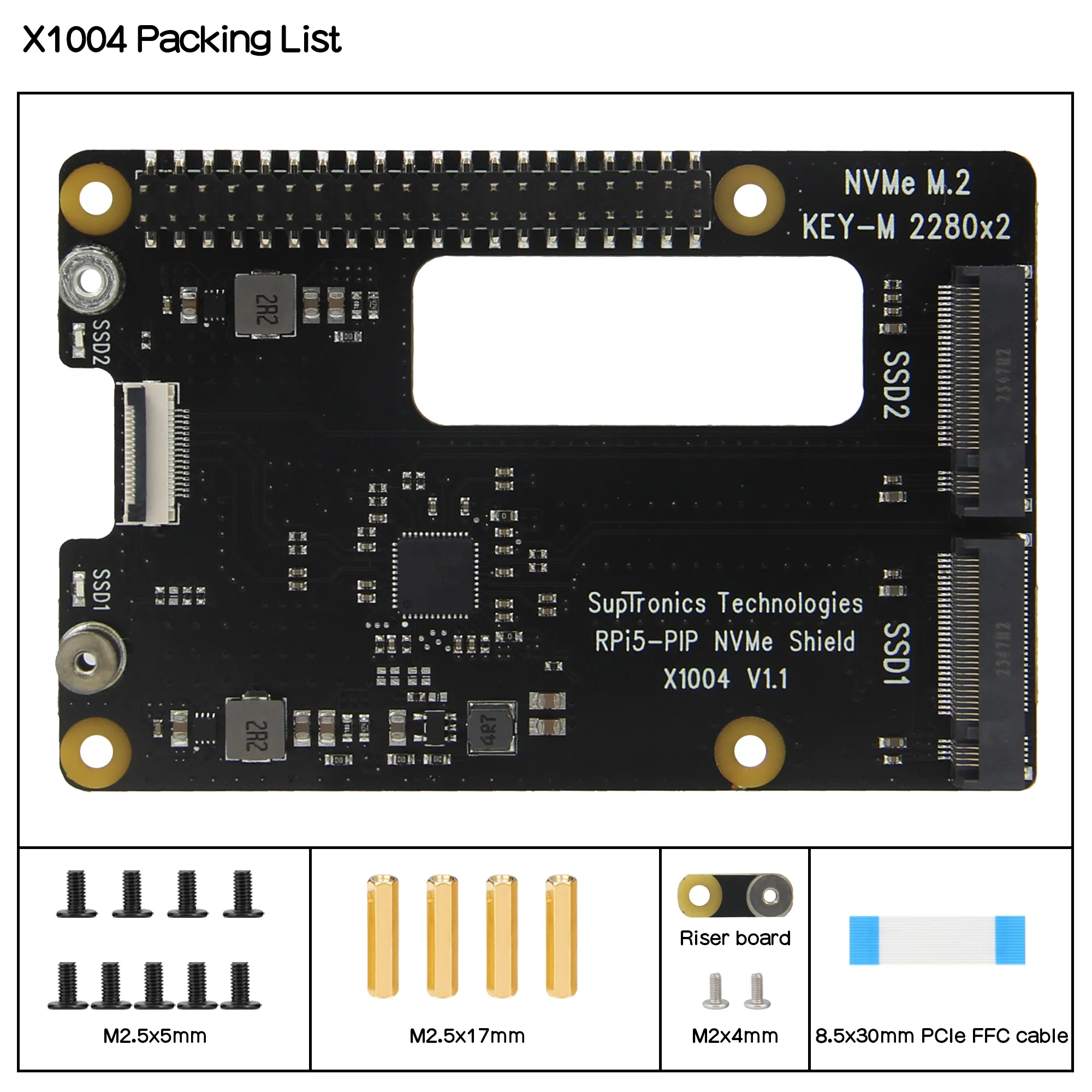X1004 NVMe dual SSD shield, designed to provide a seamless and high-speed storage solution for your Raspberry Pi 5. Its sleek and compact design enables easy attachment of two full-size M.2 2280 SSDs to your Raspberry Pi 5.